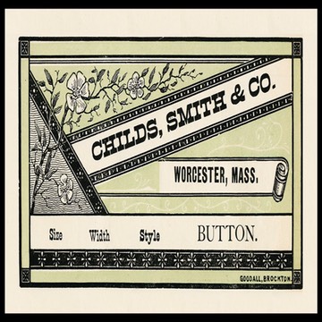 Sample shoe label, in 1800s specimen publication by printer G. A. Goodall of Brockton, Massachusetts,