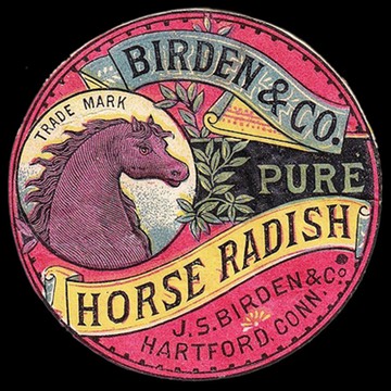 A horseradish label, apparently a cutout. It is always interesting to see how designers deal with design inside a circular space.