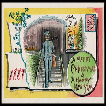 Front cover of the 1886-1887 San Francisco Letter Carries postal "carrier card" delivered to route patrons, with the imprinted name of carrier A. J. Hackett.