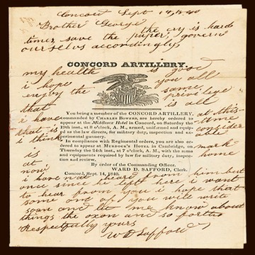 This one is interesting for several reasons. For one thing, it is actually an order for the Concord Artillery to attend two musters, one on Saturday the 19th in Concord,