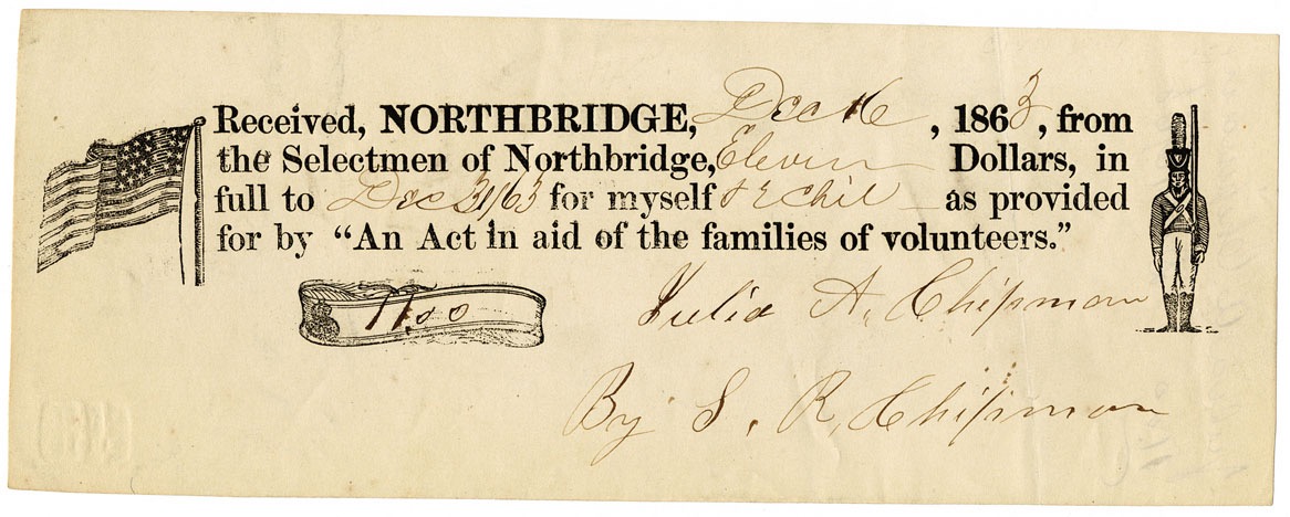 This one is not a militia meeting notice; rather, it is a receipt from a militiaman for financial assistance available to his family because he is a volunteer