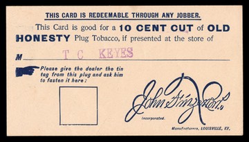 Old Honesty Plug Tobacco / T. C. Keyes, Newbury, VT