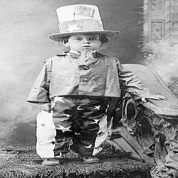 Unmounted carte de visite size image of a boy dressed as Uncle Sam, no photographer identification
