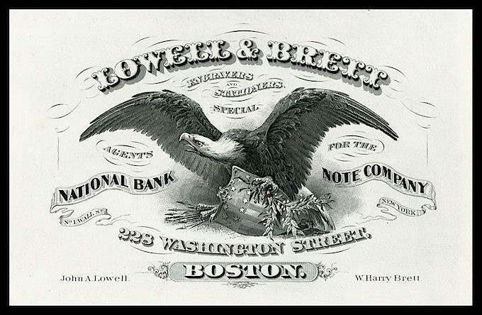 Engraved trade card. "Agents for the National Bank Note Company"