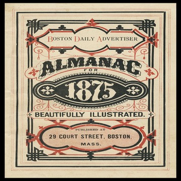 Almanac cover, 1875. This printer got a lot of complexity and implied richness out of two just colors.