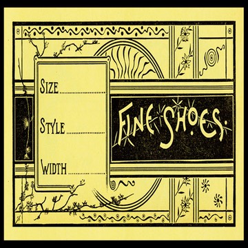 Sample shoe label, in 1800s specimen publication by printer G. A. Goodall of Brockton, Massachusetts,