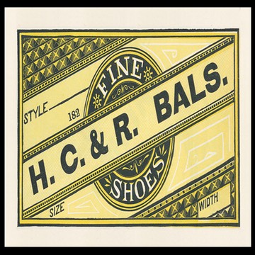 Sample shoe label, in 1800s specimen publication by printer G. A. Goodall of Brockton, Massachusetts,
