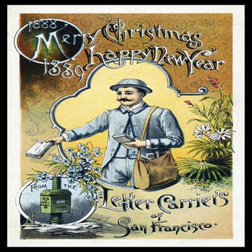 Front cover of the 1888-1889 San Francisco Letter Carries postal "carrier card" delivered to route patrons, with the imprinted name of carrier A. J. Hackett.