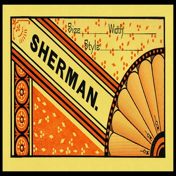 Sample shoe label, in 1800s specimen publication by printer G. A. Goodall of Brockton, Massachusetts,