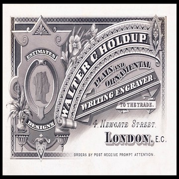 Engraved trade card, England. The head of Queen Victoria is an example of the anaglyptographic process.