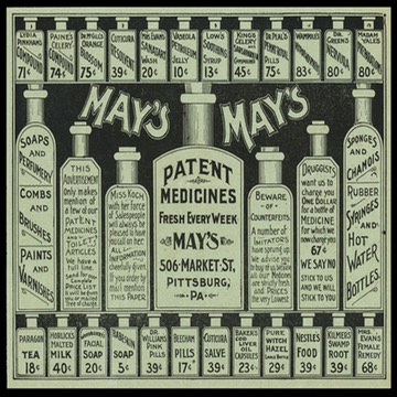 An interesting advertising broadside listing many of the brands of drugstore items in stock