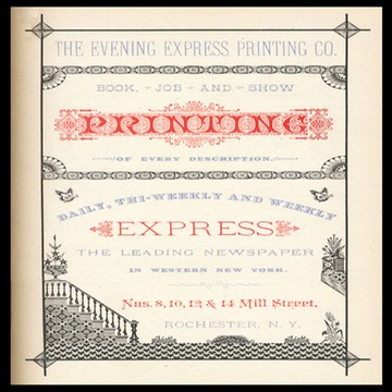 Full page advertising insert on card for a Rochester, NY newspaper publisher and book & job printer