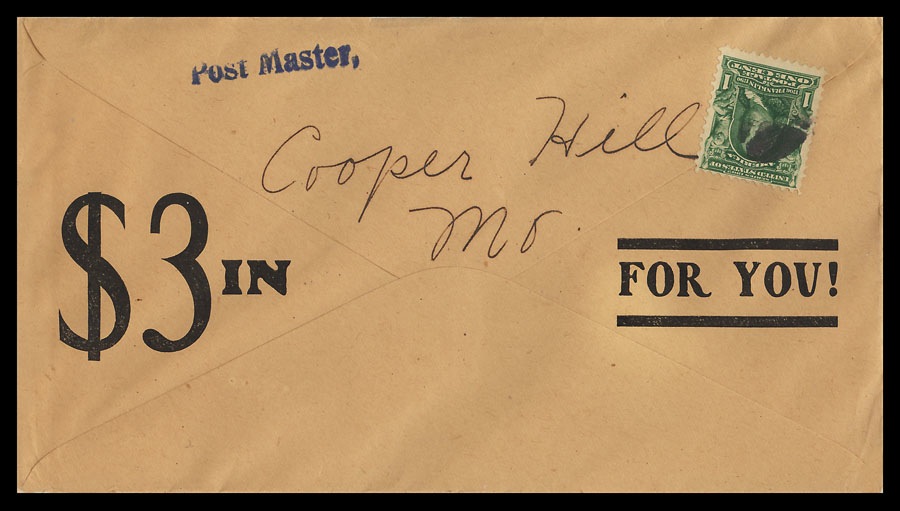 Advertising cover, with pitch to the local postmaster