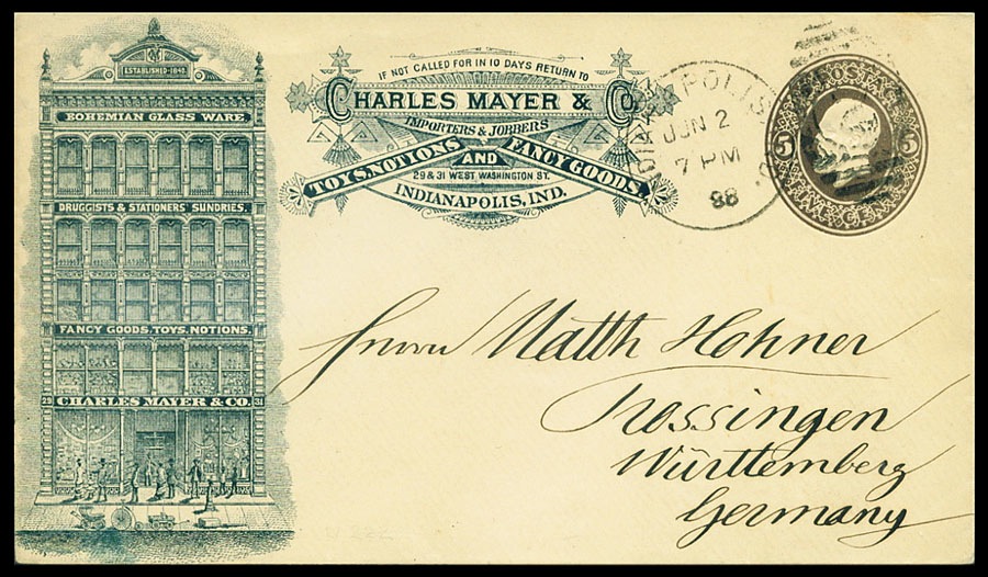 Advertising cover for an Indianapolis toy dealer, 1888 ( not in Sheaff collection )