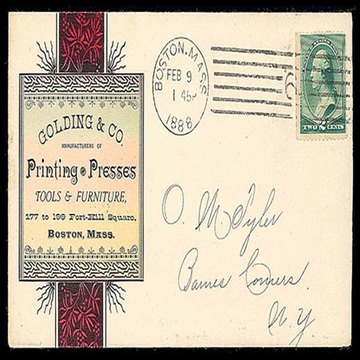 Advertising cover, 1888. Schuyler Rumsey Sale 45, Lot 832 ( Ex-Warren Albright )