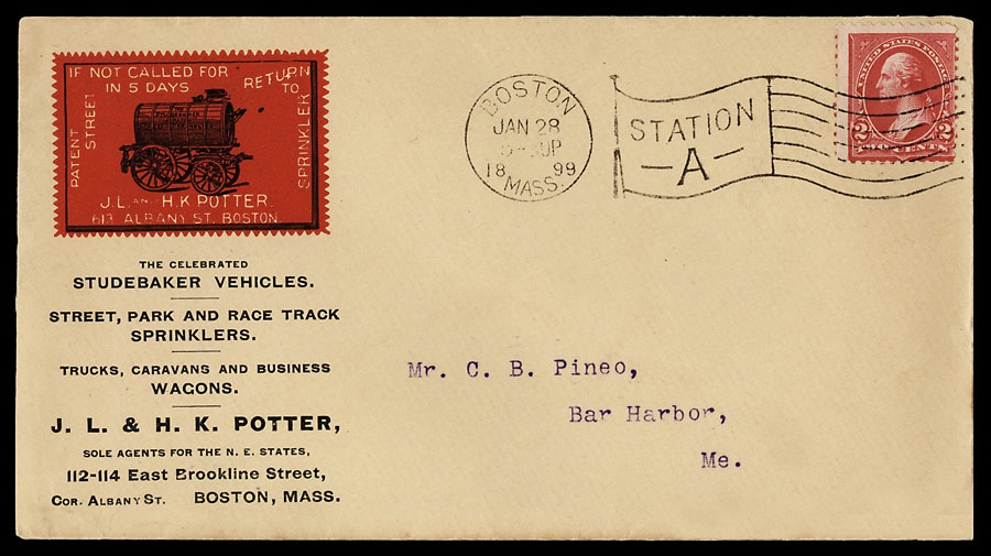 Advertising cover, 1899, with a facsimile stamp as its corner card