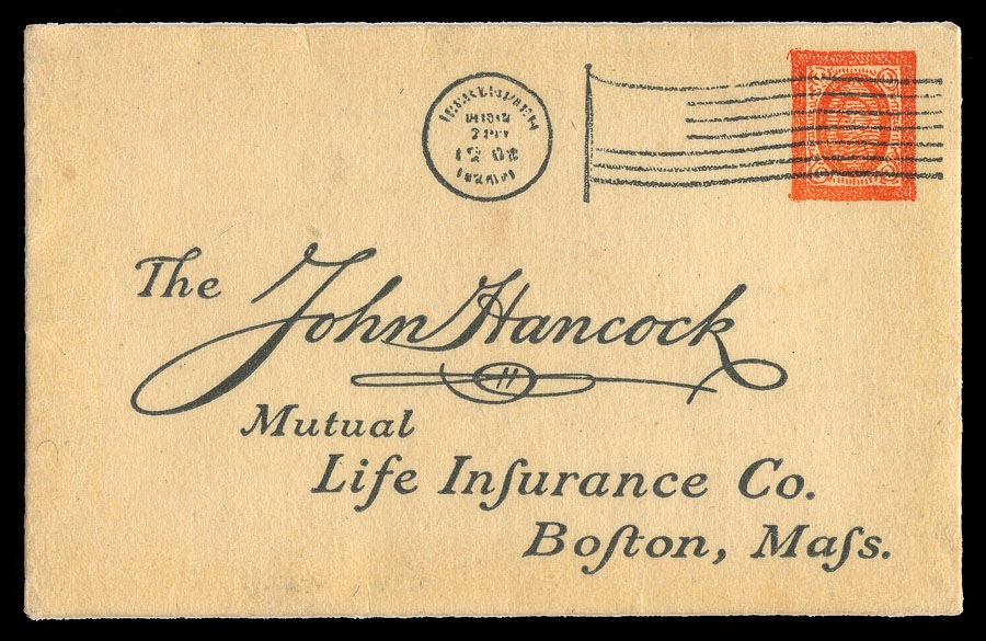 Miniature ( 1 5/8 x 2 5/8" ) facsimile cover envelope, instructions on back saying that the enclosed seal (missing) should be placed at the bottom of a policy page.