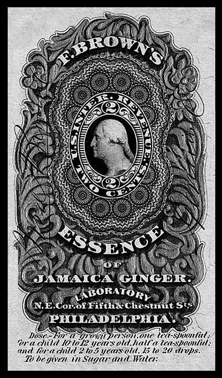 Revenue stamp / label. Frederick Brown began to make various patent medicines in the 1820s.