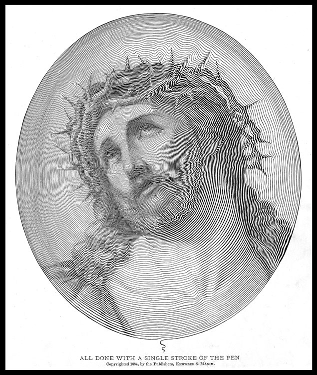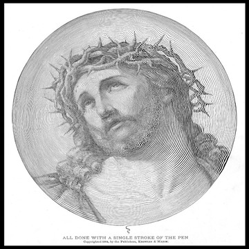 This is an 1884 example of fine penmanship rather than an example of anaglyptographic engraving, but the principle is the same.