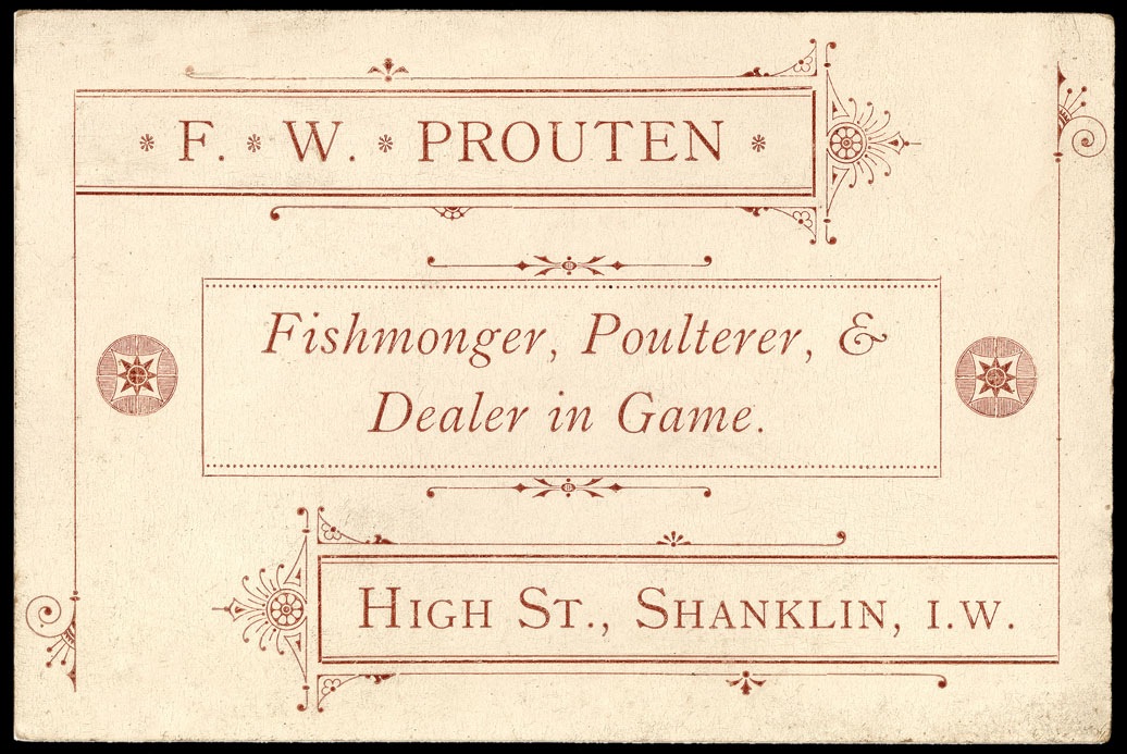 Trade card, from the Isle of Wight. This one shows strong (later) Leicester Free Style influence.