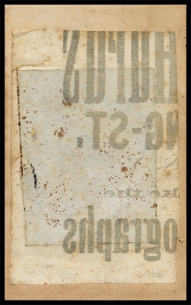 Portion of a photography-related broadside or notice, used to affix a tintype