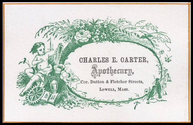 Trade card, mortised stock cut