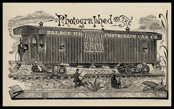 One of several traveling photography operations set up in modified railroad cars. Notice the skylight window.