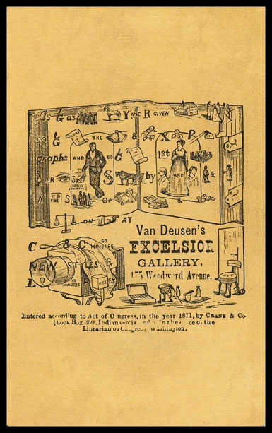 a fine selection [ s-election ] of frames, albums and cards always [ awl-weighs ] on hand at Van Deusen's EXCELSIOR Gallery, 175 Woodward Avenue,