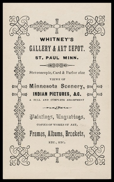 Whitney had this St. Paul studio, and also worked as a traveling photographer. He found himself in the middle of an Indian massacre in 1862, and fled from the Indians along with others, until the Army arrived. Whitney took "pictures of the captured Santee Indians