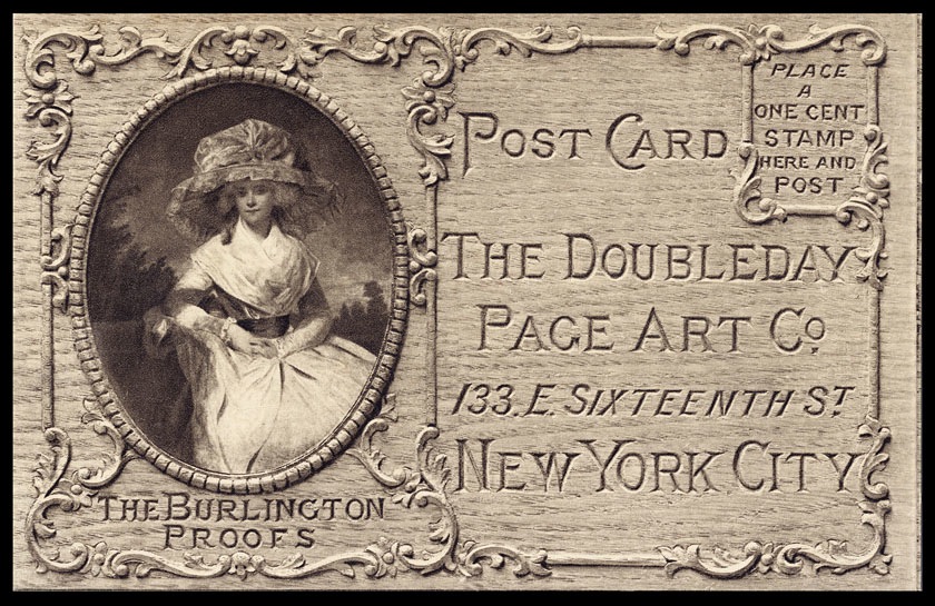desiPostcardgn carved in oak, with applied furniture-type trim of the era, photographed, then printed in halftone.
