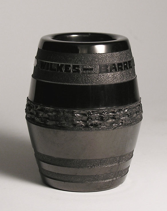 Small barrel-shaped container, carved of anthracite coal. Wilkes-Barre, Pennsylvania