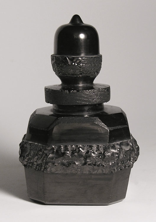 Inkwell carved of anthracite coal, acorn top lifts off