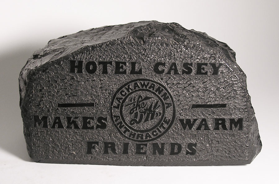 Large advertising piece, carved of anthracite coal. 12+ inches wide, 14 lbs. Signed on bottom "T. McCrone 1930".