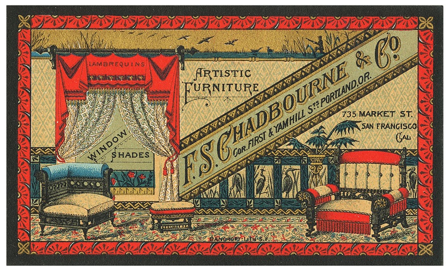 Trade card for a San Francisco furnishings company