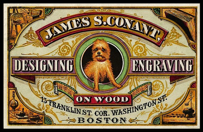 Trade card, engraving on wood ( collection of Joe Freedman )