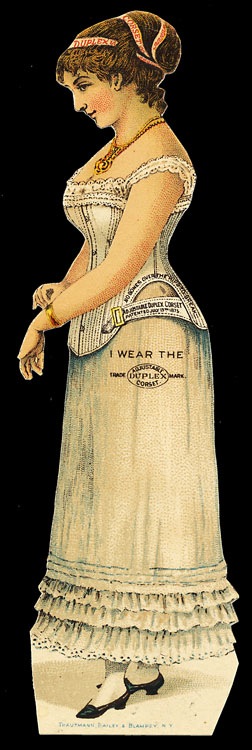 Diecut trade card, text on back. Printed by Trautmann, Bailey & Balmpey, New York