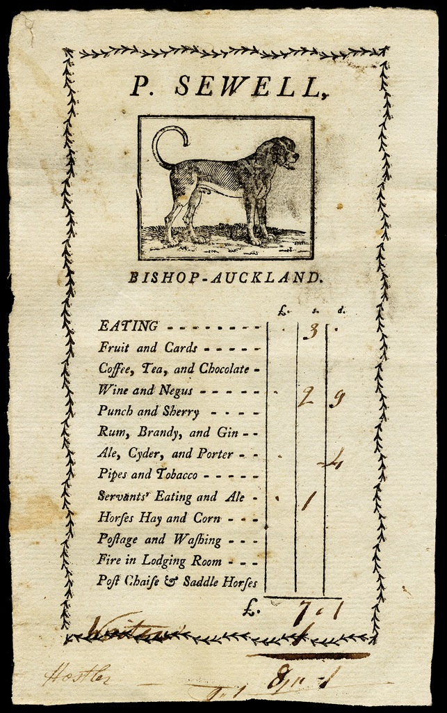 A hotel invoice/receipt (undated) from Bishop Auckland, County Durham, in the north of England.