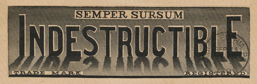 Detail of trademark on 1894 advertising cover. The Latin phrase Semper Sursum means Always Upwards or Always Aim High.