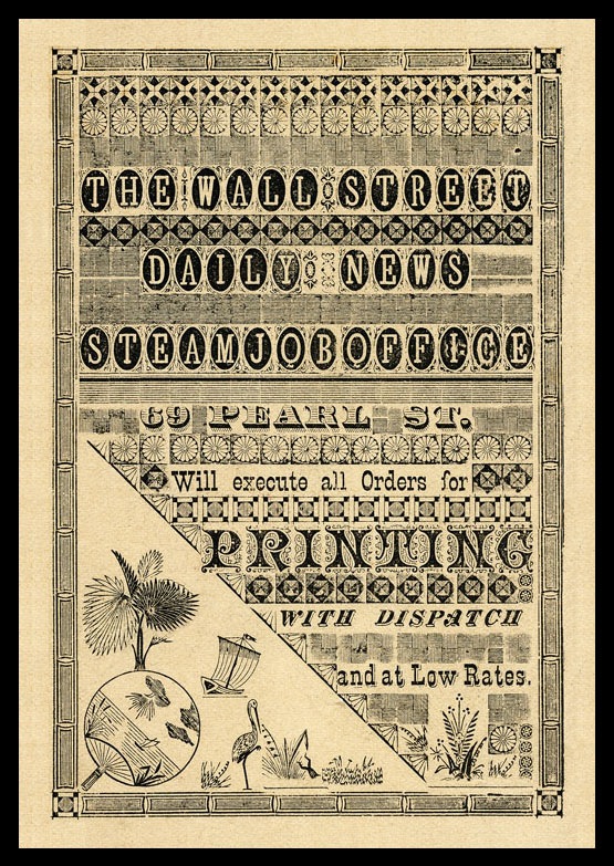 Trade card, composed of some 300 separate type elements