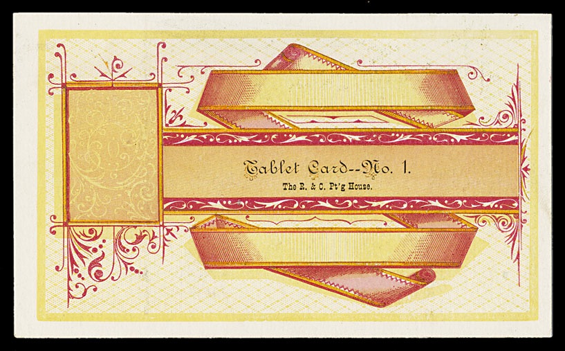 Sample specimen trade card (called a "tablet card"), "The R. & C. Printing House"