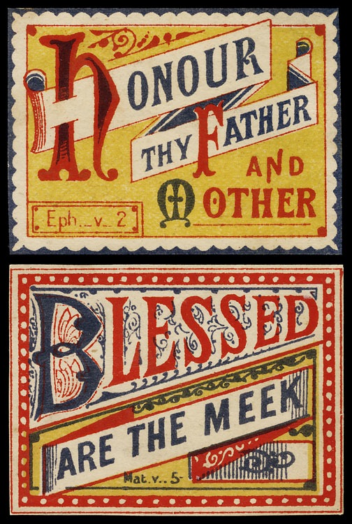 Two of a series of religious labels