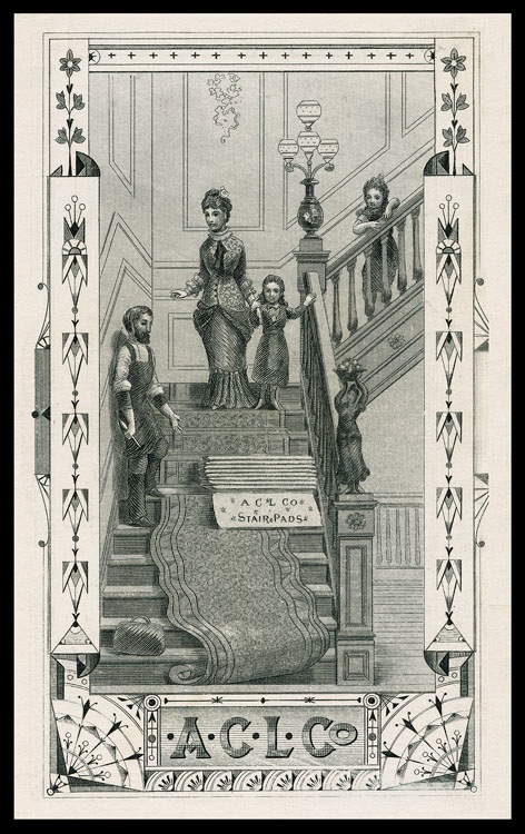 Trade card, engraved, for a stair pad company
