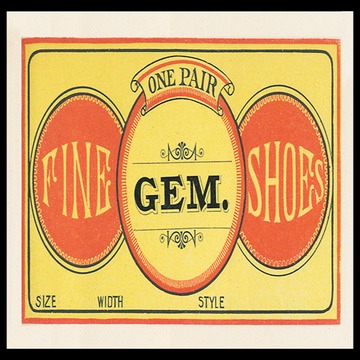 Sample shoe label, in 1800s specimen publication by printer G. A. Goodall of Brockton, Massachusetts,