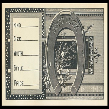Sample shoe label, in 1800s specimen publication by printer G. A. Goodall of Brockton, Massachusetts,