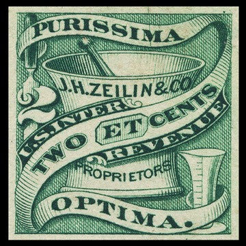 Private die revenue stamp, engraved, imperforate. Zeilin, of Philadelphia, produced several different patent medicines.