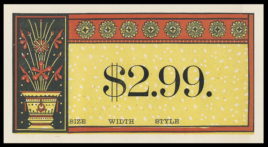 Sample shoe label, in 1800s specimen publication by printer G. A. Goodall of Brockton, Massachusetts,