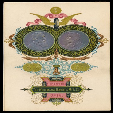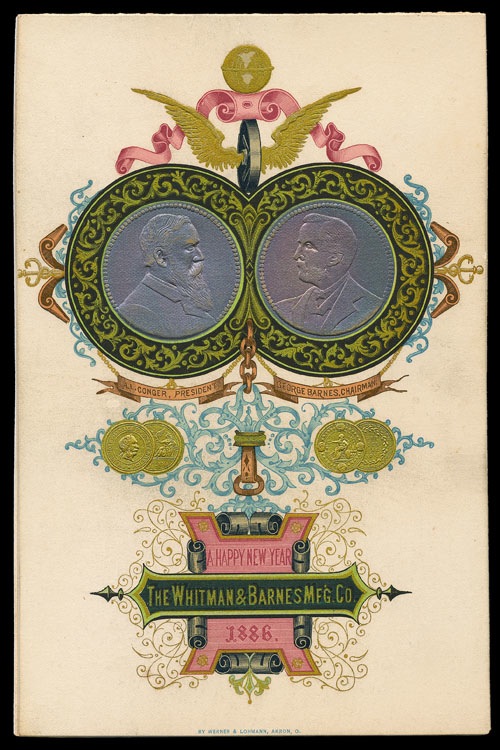 Elaborate Happy New Year folder, 1886, printed by Werner & Lohmann, Akron, Ohio