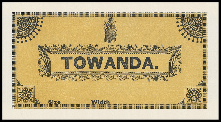 Sample shoe label, in 1800s specimen publication by printer G. A. Goodall of Brockton, Massachusetts,