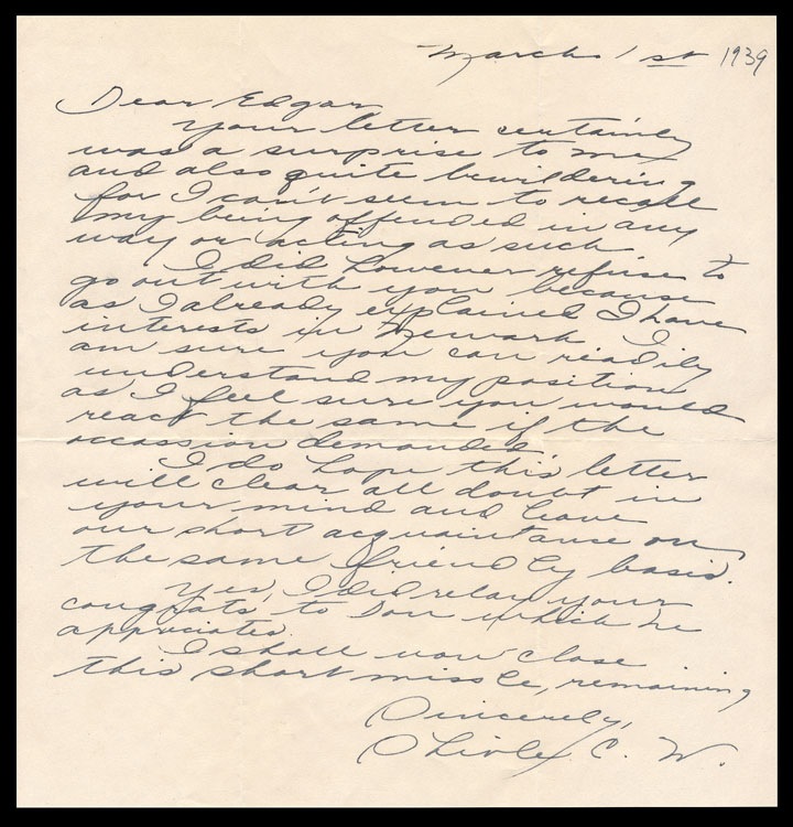 "Dear Edgar", 1939