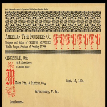 Letterhead, 1904, with a letter which accompanied the firm's first chap-book.